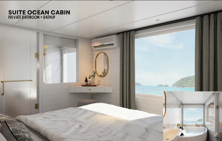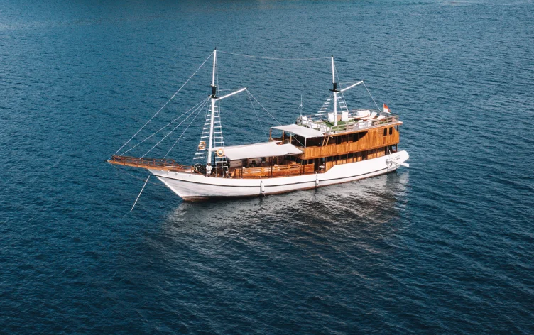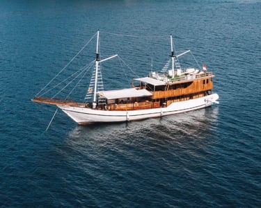 Boat lenght : 30 meter, Widght : 6 meter, Cruising speed : 8-14 knots, Fresh water capacity : 10.000 L, Engine : mitsubishi 6D16, Power supplay : Generators yanmar TF155, Navigations : gps map dan kompas, Radio : vfh, Capacity : 14 Guest, 7 Cabin AC With all Private Bathroom + Hot Water